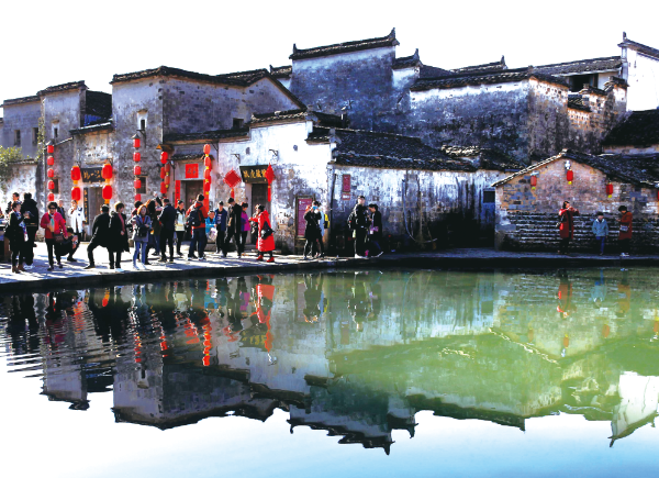 △ 2018年3月11日,游客在安徽皖南宏村古村落游覽觀光。施廣德攝
