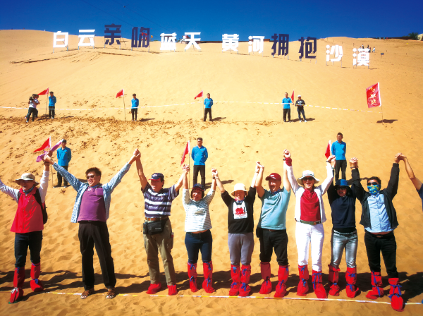 △ 2018年9月7日,為慶祝寧夏回族自治區成立六十周年,寧夏(沙坡頭)國際沙漠旅游牽手活動在寧夏中衛沙坡頭景區舉辦。王濤攝