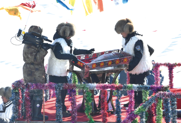 △ 2018年12月28日,查干湖冰雪漁獵文化旅游節在吉林松原拉開帷幕,數萬海內外游客冒著嚴寒趕到現場觀看“冰湖騰魚”勝景。張瑤攝