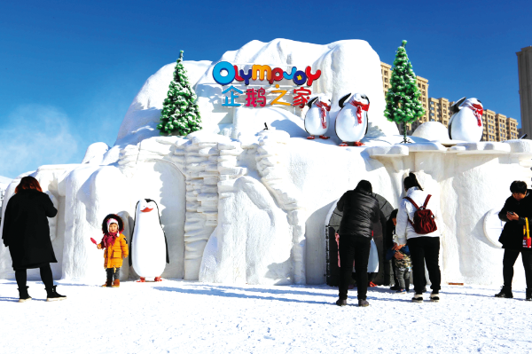 △ 2018年12月23日,沈陽市首屆丁香湖奧悅冰雪嘉年華現場,眾多游客賞雪玩雪,拍照留念。劉寶成攝