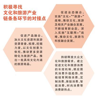 2018年,文化和旅游部的組建以及各地文化和旅游機構改革的完成,開啟了文化與旅游融合發展的新篇章。今年兩會,文化與旅游融合成了各界關注的焦點。政府工作報告提出“推動文化事業和文化產業改革發展”“發展壯大旅游產業”“加強文物保護利用和非物質文化遺產傳承”等多處與文化和旅游密切相關的內容。