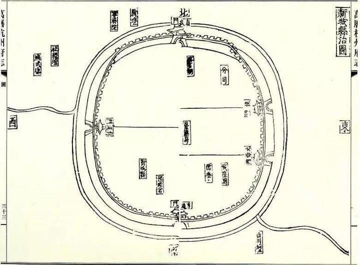 據(jù)《新登縣志》記載:“明嘉靖三十四年修筑城墻三里共六百余丈,高一丈六尺,只開(kāi)四門(mén),修雉堞五百七十堵。”“明萬(wàn)歷三年知縣溫朝祚增作女墻,高三尺五寸,池環(huán)如城。”