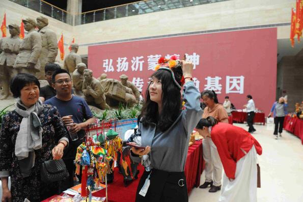 圖為6月6日,民眾在山東省臨沂市新四軍軍部舊址體驗革命老區非遺民俗。蘇銳/攝