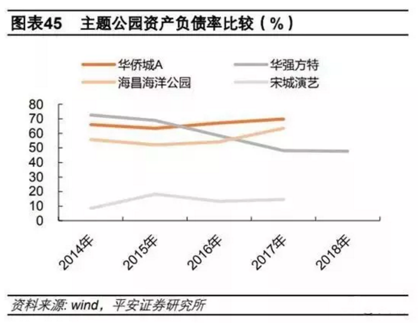 值得注意的是,隨著華強方特轉向輕資產輸出的路徑,公司資產負債率逐年下降。這是目前幾乎所有主題公園品牌都在轉型的方向。海昌海洋公園輕資產戰略起步較晚,又新開了兩個重資產項目,導致其凈負債率從前一年的77.8%驟升至2018年的135.7%。而典型輕資產模式的宋城演藝,剝離六間房后,資產負債率只有10.43%。