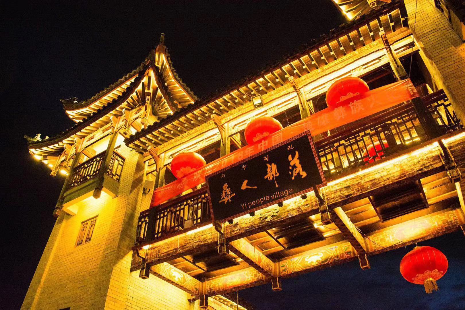 彝人部落夜景 ( 彝人古鎮供圖)