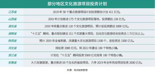 從各省份重點項目推進計劃上看,各地方政府對于發(fā)展文化旅游業(yè)的決心也可見一斑。據(jù)了解,在已公布的各省級行政單位重點項目計劃中,文旅項目的投資都成為其中重要的板塊。與此同時,個別省份在2019年計劃推進的重點文化旅游項目甚至達上千個,計劃投資總額最高達3000億元。