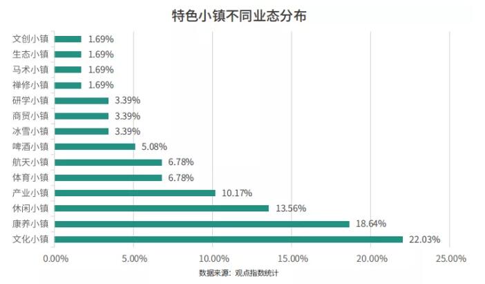 其中,文化類、康養(yǎng)類、休閑類、產(chǎn)業(yè)類小鎮(zhèn)在投資數(shù)量上均超過了10%。除此以外,航天小鎮(zhèn)、冰雪小鎮(zhèn)、馬術(shù)小鎮(zhèn)、禪修小鎮(zhèn)、研學(xué)小鎮(zhèn)、文創(chuàng)小鎮(zhèn)也隨著消費的崛起以及政策的偏向走進人們的視野。