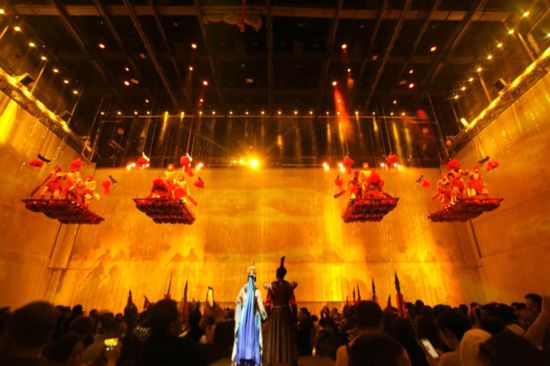 《沙坡頭盛典》以中衛(wèi)沙坡頭“桂王城”“沙坡鳴鐘”“沙掩王城”“淚泉”等古老傳說為故事原型,首創(chuàng)沉浸式情境體驗,通過運用全息影像、AR技術應用、玻璃晶球、巨型升降平臺等9D舞美前沿科技,實現(xiàn)了從空間、科技、文化乃至藝術表現(xiàn)形式等方面的“七大”創(chuàng)新突破,推動寧夏文化與旅游、科技的深度融合,助推中衛(wèi)乃至寧夏文化旅游和云產業(yè)的全面發(fā)展,推動全域旅游快速發(fā)展。