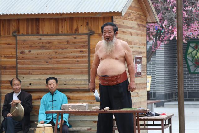 在吳橋雜技大世界江湖文化城里,年近古稀的老藝人高福洲一邊敲鑼,一邊唱著鑼歌與觀眾互動(dòng)。“練好了是輕氣功,練不好就是剖腹產(chǎn)了。”他經(jīng)常在表演“肚皮上切菜”時(shí)這樣開玩笑說。