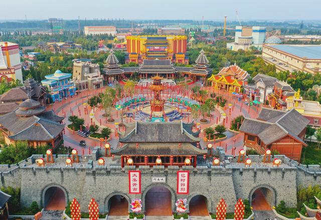 ↑ 這是9月25日拍攝的邯鄲市磁縣方特國色春秋主題樂園(無人機照片)。