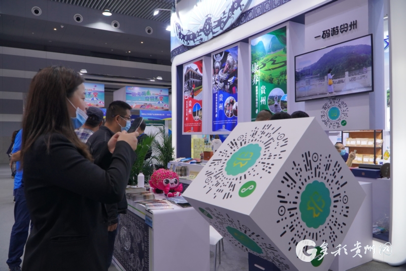 據(jù)了解,立方體展覽臺上的二維碼是由貴州省文化和旅游廳全新推出的“一碼游貴州”全域智慧旅游平臺二維碼,該平臺也是本次貴州館展覽的一大亮點(diǎn)。