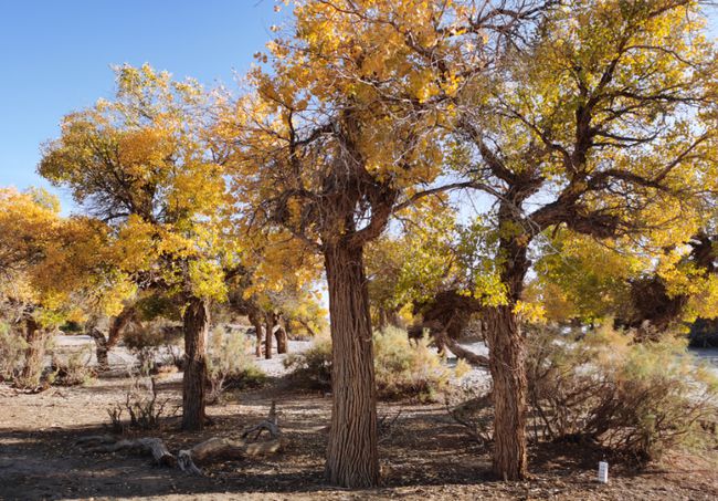 進入最佳觀賞期的胡楊樹葉金黃。(攝影:斯琴)