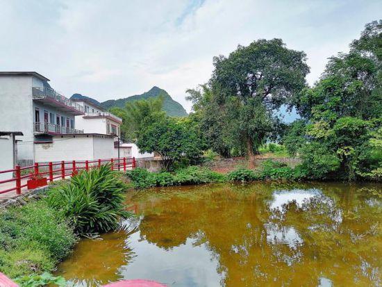 武鳴區兩江鎮合聳村呈下屯的池塘邊建起嶄新樓房。記者韋薇攝