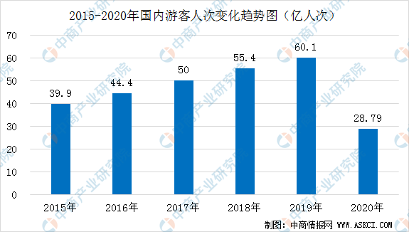 旅游業(yè)是提高人民生活水平的重要產(chǎn)業(yè),近幾年,我國旅游人數(shù)及旅游收入快速增長。旅游人數(shù)由2015年的39.9億人次增至2019年的60.1億人次。受新型冠狀病毒肺炎疫情影響,2020年度國內(nèi)旅游人數(shù)28.79億人次,比上年同期減少30.22億人次,下降52.1%。其中,城鎮(zhèn)居民出游20.65億人次,下降53.8%;農(nóng)村居民出游8.14億人次,下降47.0%。