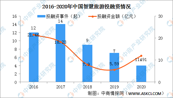 2017年以來,我國智慧旅游投融資事件持續(xù)減少,2020年受疫情影響,旅游業(yè)受重挫,智慧旅游投融資事件僅4起,投融資金額11.91億元,同比增長113.06%。智慧旅游領(lǐng)域投融資更為謹慎,資本青睞較為成熟的項目。