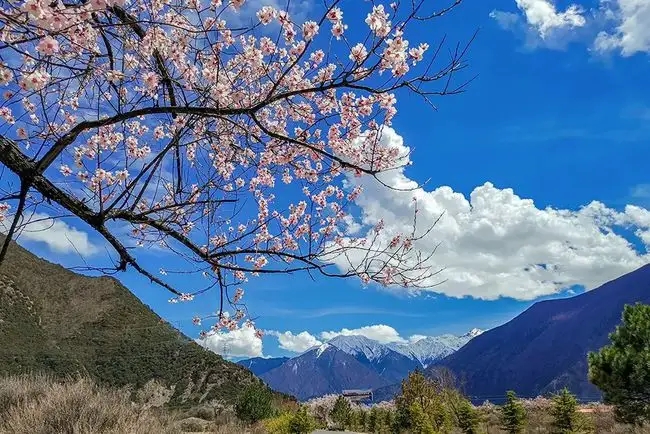 米林縣境內的索松村位于雅魯藏布大峽谷北岸,是觀看南迦巴瓦峰日落的最佳方位。這個小山村擁有得天獨厚的自然景觀優勢,每年春季,桃花盛開,伴著周邊的江水、雪山,簡直是美不勝收。