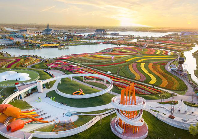 荷蘭花海景區(qū)是斗龍港生態(tài)旅游度假集團(tuán)“花”經(jīng)濟(jì)的重點(diǎn)“IP”。百萬株郁金香盛開季,日接待游客近30萬人次。在景區(qū)北側(cè)的產(chǎn)學(xué)研基地,記者看到,成片的海棠花苗正在溫室里孕育,技術(shù)員和養(yǎng)護(hù)工人在盯防呵護(hù)。“我在這里工作11年了,土地租給景區(qū)有租金,我自己一年還有2萬多元的收入。”70歲的李小蘭是附近的村民,提到景區(qū),滿臉笑容,“花海讓我一家有了幸福生活!”