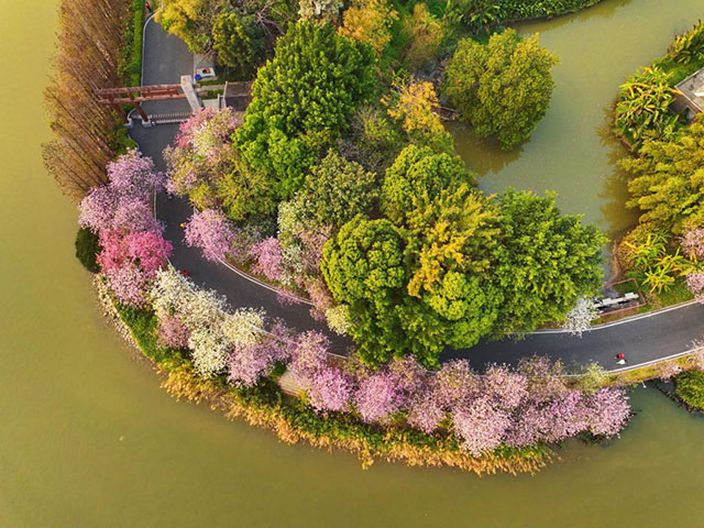 其中,海珠國家濕地公園的櫻花、宏城公園的虞美人、中山紀念堂的木棉花以及云臺花園的郁金香等,都成為最熱門的本地 " 花事 "。同時," 穿漢服、賞夜櫻 " 成為年輕玩家們的賞花新時尚。