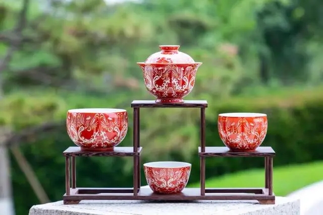 其中,粉彩錯(cuò)金銀虎嘯鳳吟系列,是一件不可多得的佳器名品。整套茶具紋飾以館藏文物唐代金鳳飾件為設(shè)計(jì)靈感。金鳳雙翅展開,兩足蹬地,振翅欲飛的姿態(tài)生動(dòng)逼真。在中國古代傳統(tǒng)文化中,鳳凰被視為瑞鳥,是鳥中之王。通過對(duì)金鳳飾件進(jìn)行提取,設(shè)計(jì)出鸞鳥紋,鳳紋羽翼展開可合為院徽?qǐng)D形,整體構(gòu)成虎頭紋。茶具沿用藝林堂的粉彩工藝,采用錯(cuò)金銀的呈現(xiàn)效果,不僅讓這只“鳳”更有“活性”,也讓器物更有精細(xì)感,正紅的底色也呈現(xiàn)出“紫禁紅”“中國紅”的極佳效果,在保留和傳播傳統(tǒng)文化的同時(shí),也符合當(dāng)下的審美需求。