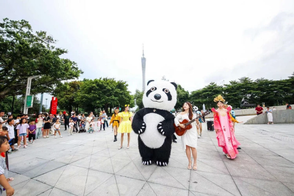 在五天的時間里,主題為“錦官花語·愛行成都”的情景劇快閃演出在五座城市的城市地標處掀起熱潮,吸引當?shù)厥忻裼慰婉v足關(guān)注。鄭州記憶·油化廠創(chuàng)意園內(nèi)、蘭州中山橋橋頭、南京百家湖摩天輪下、武漢江漢路步行街街頭、廣州大劇院廣場上,一場場創(chuàng)意十足的成都文旅推介活動,通過精心編排的情景劇,開啟一段段跨越時間與空間的奇幻旅程。