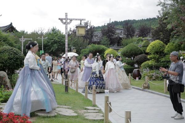 近年來,延吉市以文旅融合為主線,大力發展民族特色旅游產業,創意提煉特色文化IP符號。清晨,在熙熙攘攘的水上市場,打糕、湯飯、泡菜等朝鮮族特色美食琳瑯滿目,尋味之旅從這里開始;白天,逛一逛博物館、朝鮮族民俗園,年輕人化身“公主”“王子”,在青瓦白墻間留下美麗寫真;下午,在遍布城市的咖啡館坐下來,或紅參,或米酒,體驗“縣咖之王”的多種風味……