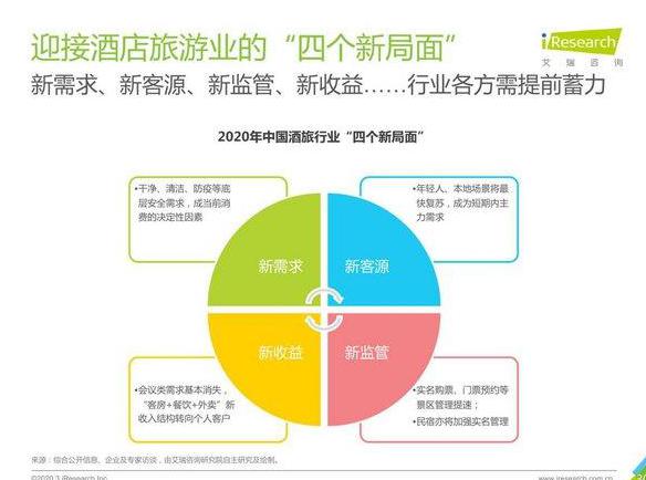 酒店旅游業逐級恢復預計將分為冰封期、解凍期、回暖期、重歸增長期共4個階段,目前已進入解凍期階段。今年中國酒旅行業復蘇將出現四個新局面,分別為新需求、新客源、新監管、新收益。